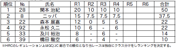 ■第4戦終了後 GCクラスポイントランキング