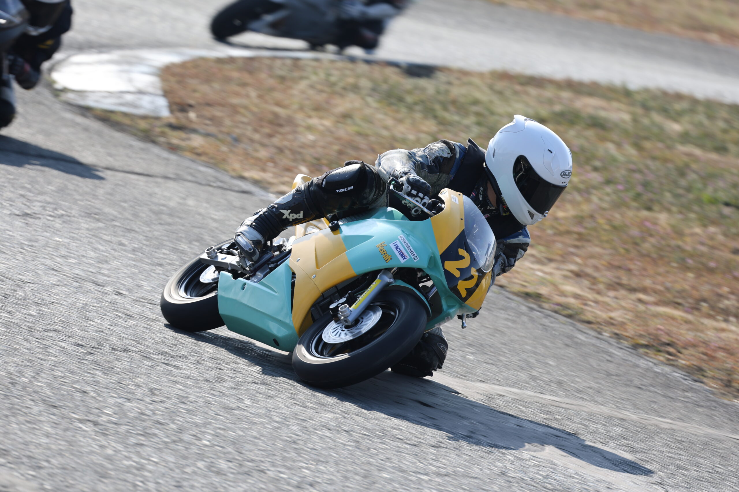 コースイン直後からエンジンの吹け上がりの良さを感じ、キャブセッティングは的中。サスペンションも特に不具合なし。