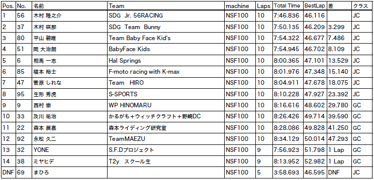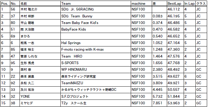 しかし今回はベストラップ更新ができず、各ライダーの持ちタイム通りに収まったレース。