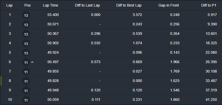 49秒台中盤で周回できるが、それ以上のペースアップができない。