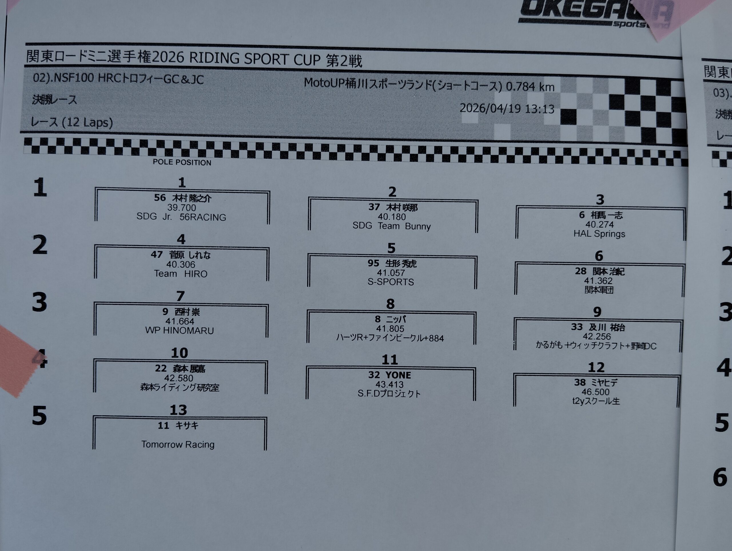 第1戦は3位表彰台でしたが、今回は自身より持ちタイムの速いライダーが2名参戦しており、結果としては想定通りのポジションとなりました。
