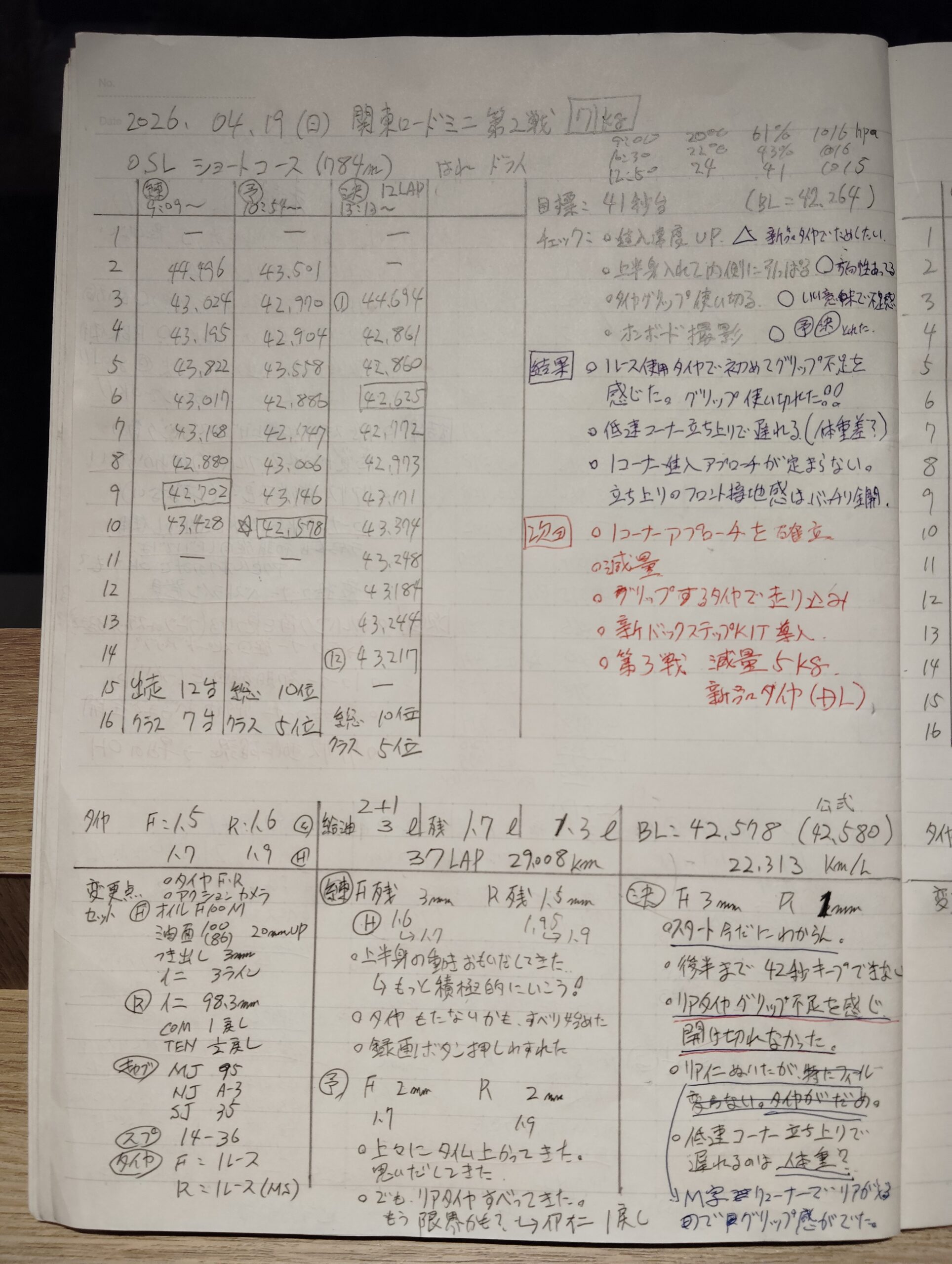 - 今回の中古タイヤでは、レース中にチャレンジが出来ない